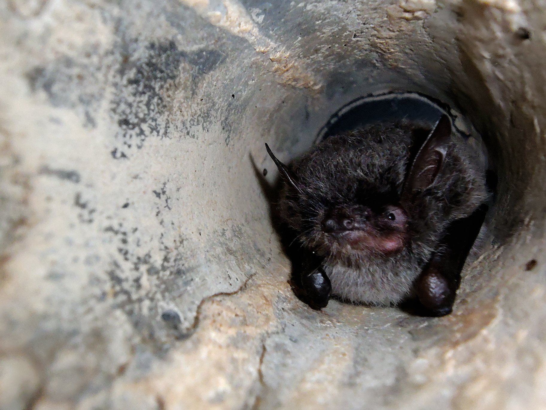 モモジロコウモリは手の親指ほどの小型のコウモリで、公園では市場溜の水面上で小さな昆虫などを捕らえているようです。